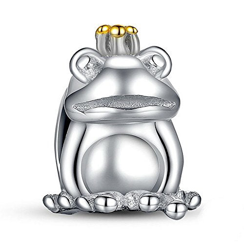 PAHALA 925 Sterling Silver Prince Forg with 14 Gold Plated Crown Fit Bracelets Necklace