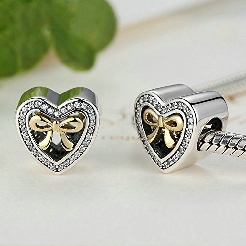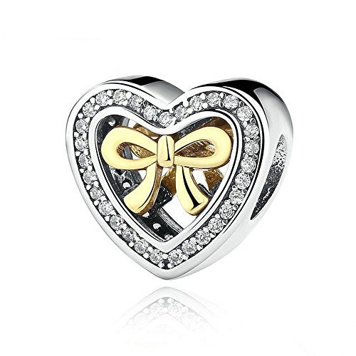 PAHALA 925 Sterling Silver Romantic Openwork Heart Love Bow-Knot Charms Fit Bracelets Necklace