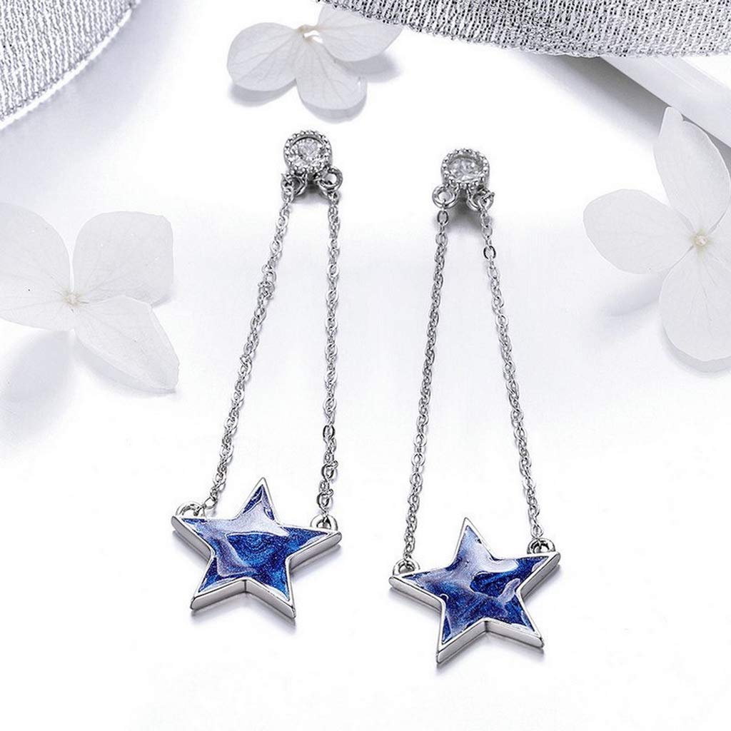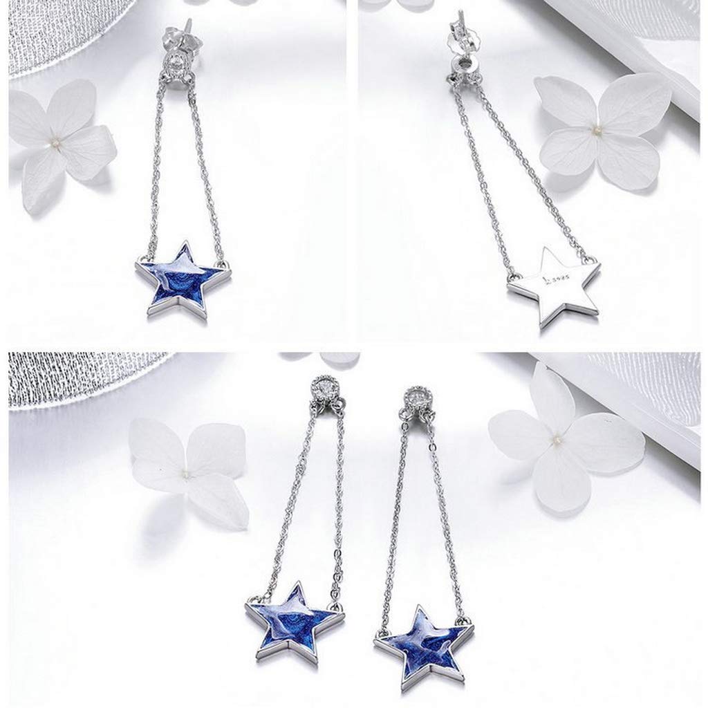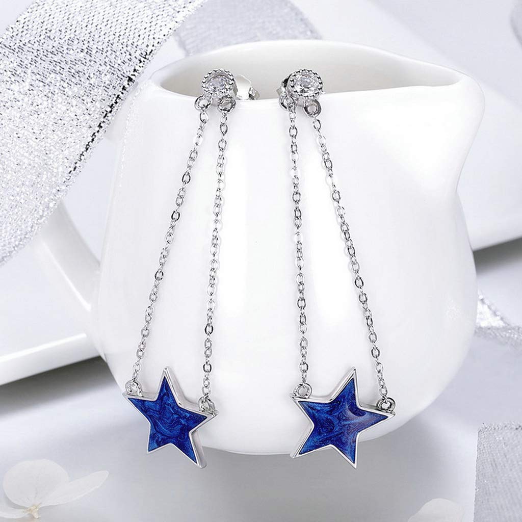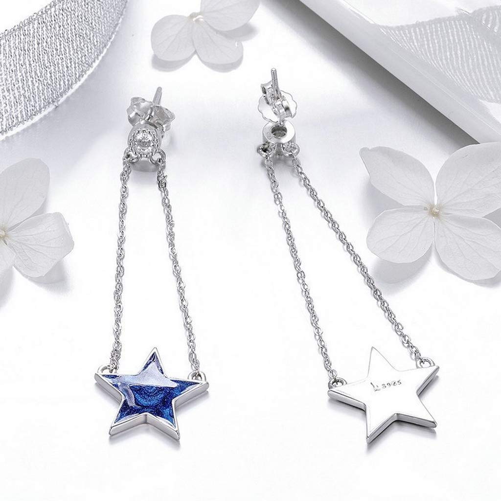 PAHALA 925 Sterling Silver Sparkling Star Chain Dangle Drop Earrings