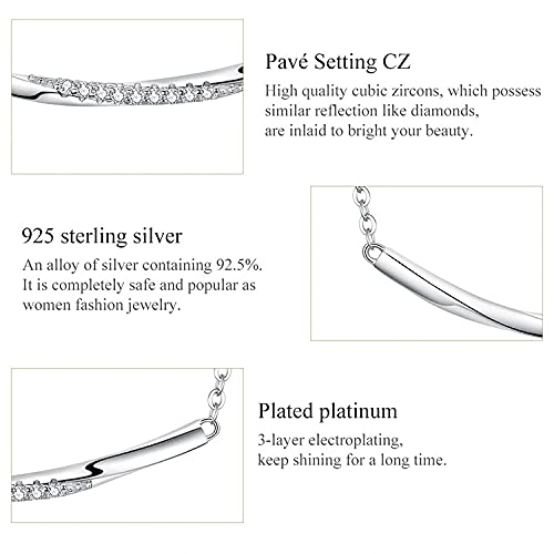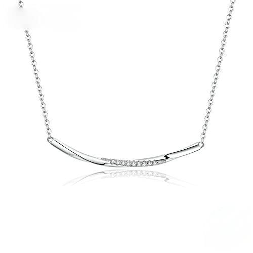 PAHALA 925 Sterling Silver Wave Clear CZ Choker Minimalist Crystals Pendant Necklace