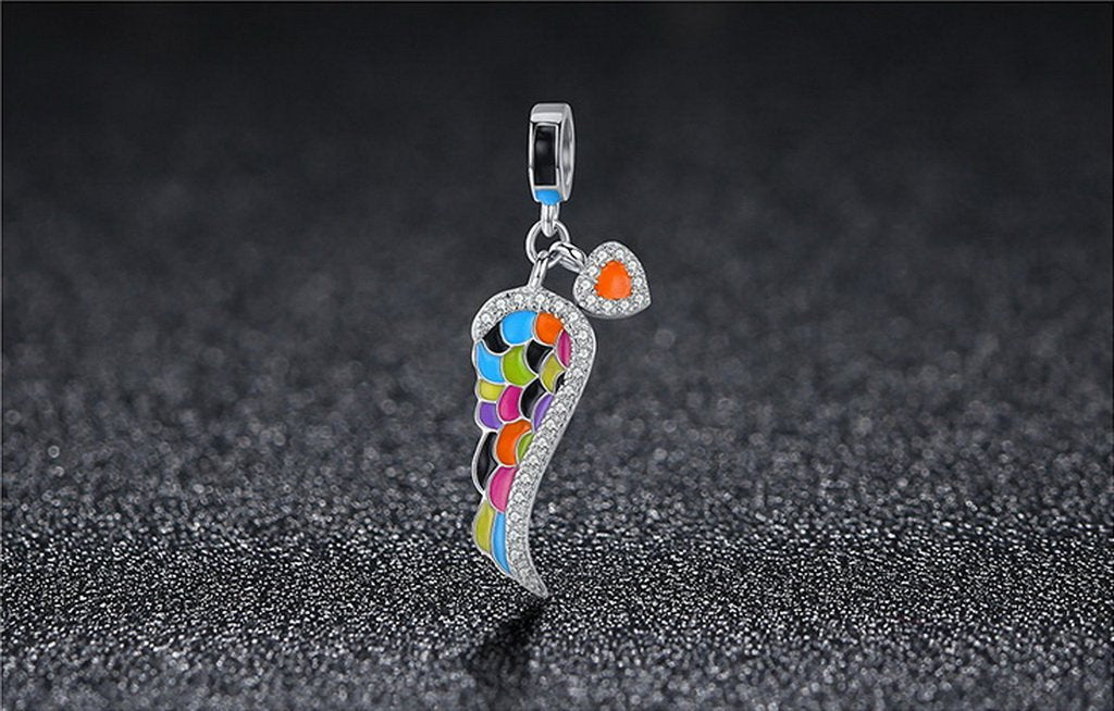 PAHALA 925 Sterling Silver Wing with Colorful Enamel Crystals Pendant Charm Bead