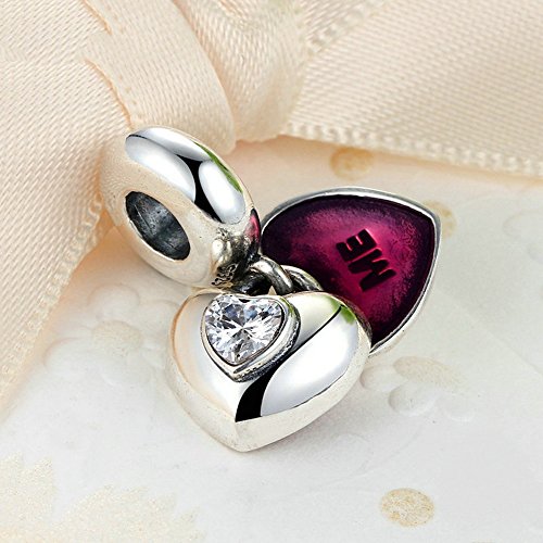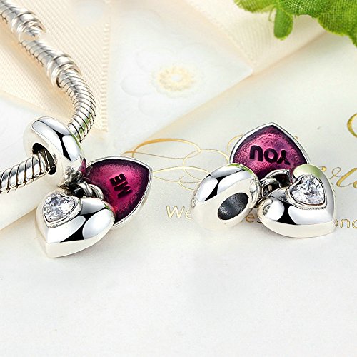 PAHALA 925 Sterling Silver You and Me Heart Enamel with Crystal Charms Pendant Fit Bracelets Necklace