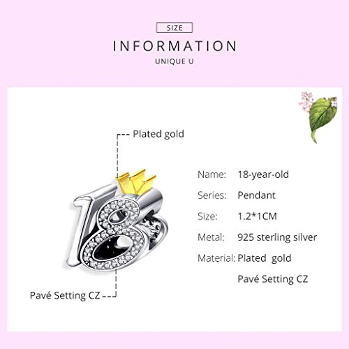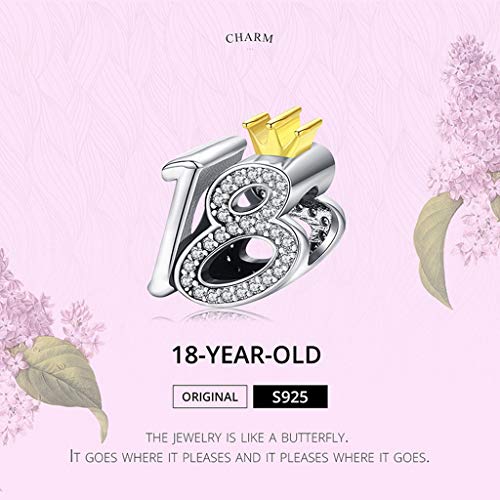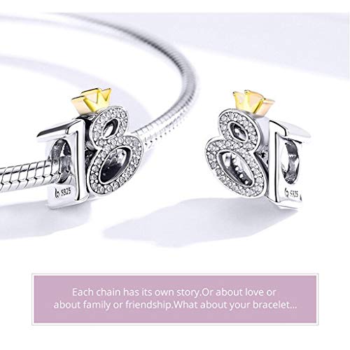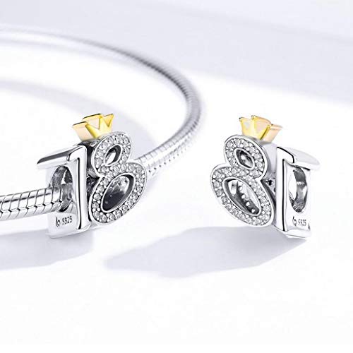 PAHALA 925 Strling Silver 18 Year Old Adult Ceremony Bead With Crystals Charm Bead