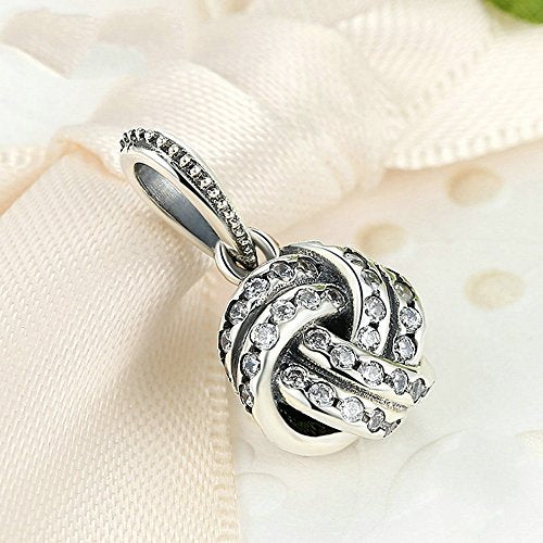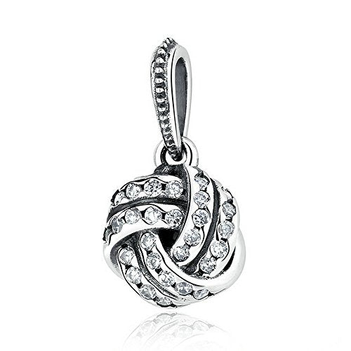 PAHALA 925 Strling Silver Ball Shaped Weave with Crystals Charms Pendant Fit Bracelets Necklace