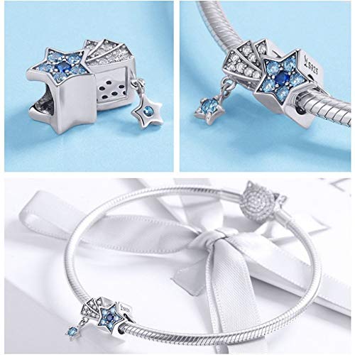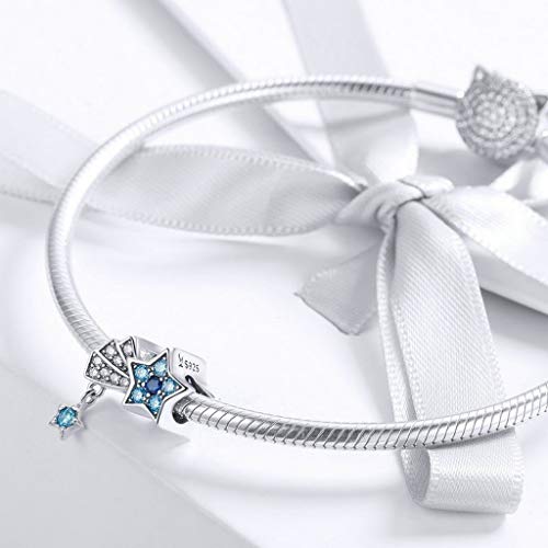 PAHALA 925 Strling Silver Blue Crystal Shimmering Sky Star Charms Beads