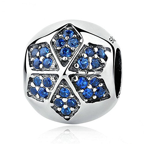 PAHALA 925 Strling Silver Blue Crystals Flower Charms Pendant Fit Bracelets Necklace
