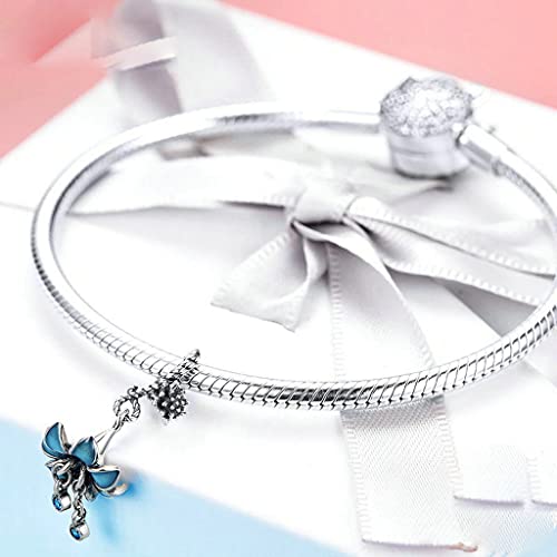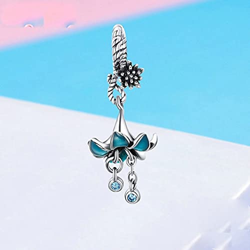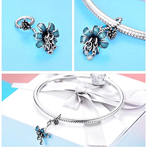 PAHALA 925 Strling Silver Blue Enamel Flower Pendant with Crystals Charm Bead
