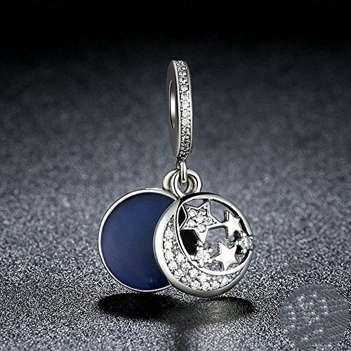 PAHALA 925 Strling Silver Blue Enamel with Star Charms Pendant Fit Bracelets Necklace