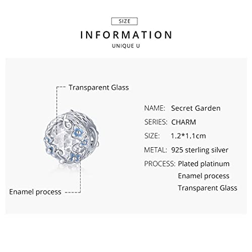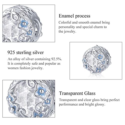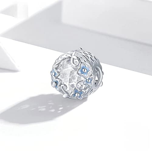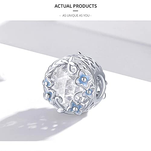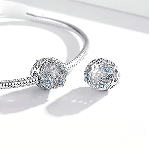 PAHALA 925 Strling Silver Blue Flower Secret Garden White Crystal Charm Bead