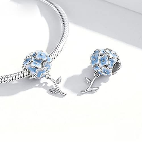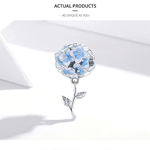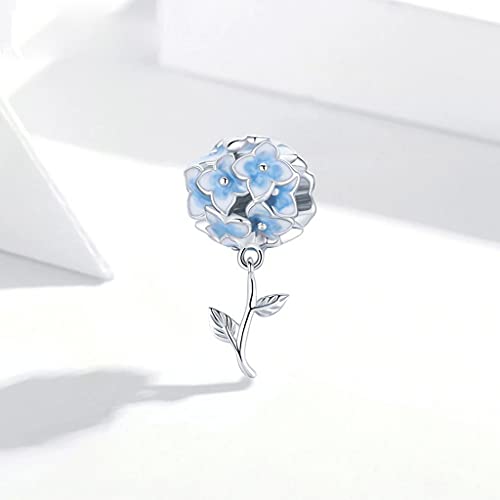 PAHALA 925 Strling Silver Blue Hydrangeas Pendant Charm Bead