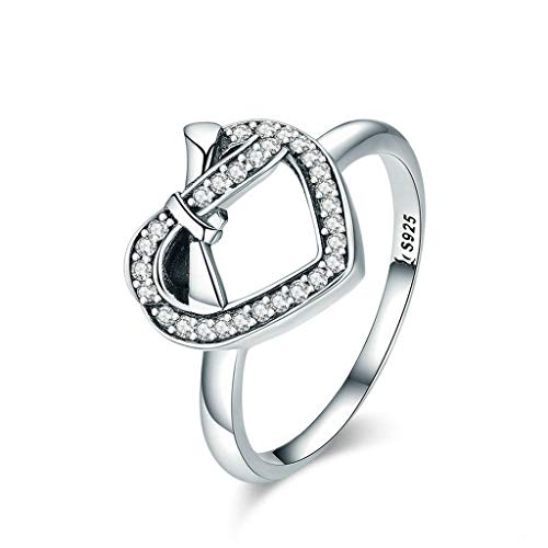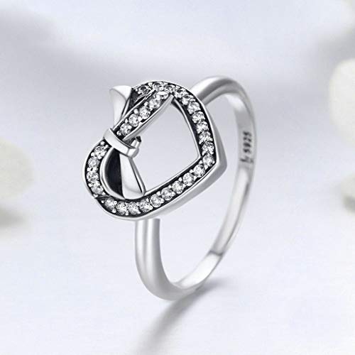 PAHALA 925 Strling Silver Bowknot Love Heart Crystals Finger Weeding Party Ring