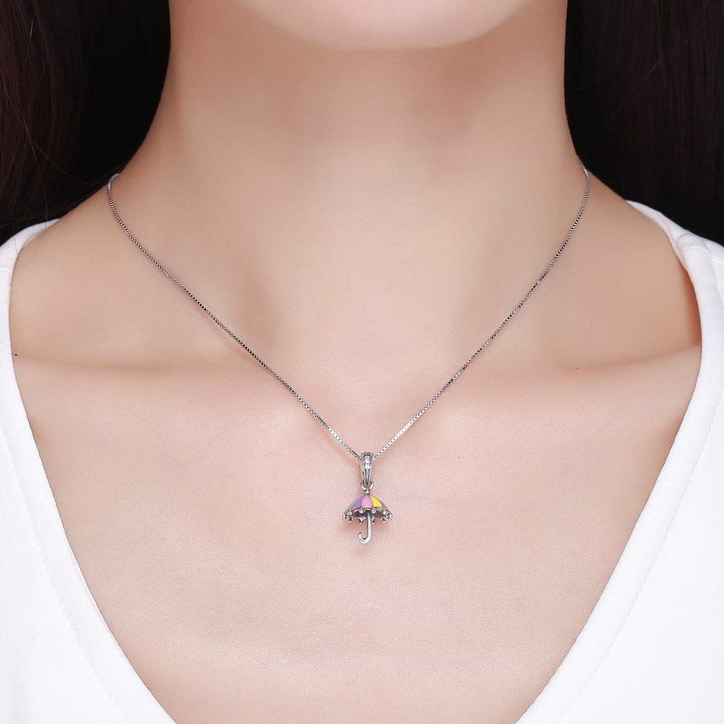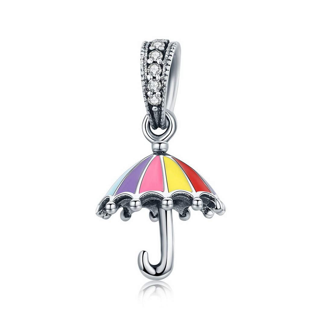 PAHALA 925 Strling Silver Color Enamel Umbrella Crystal Charms