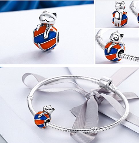 PAHALA 925 Strling Silver Colourful Cat Charms Fit Bracelets Necklace