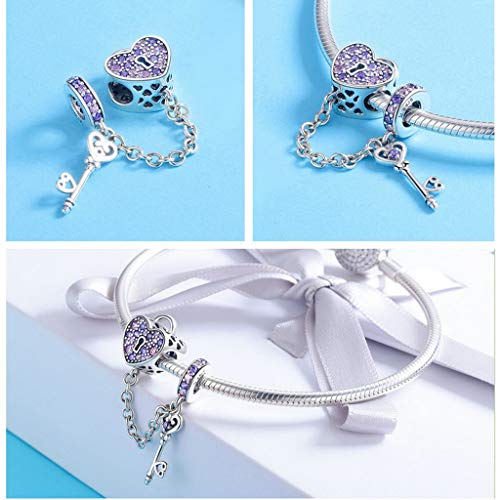PAHALA 925 Strling Silver Crystals Key of Heart Love Lock Safety Chain Pendant Charms Beads