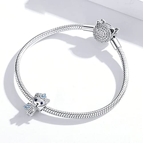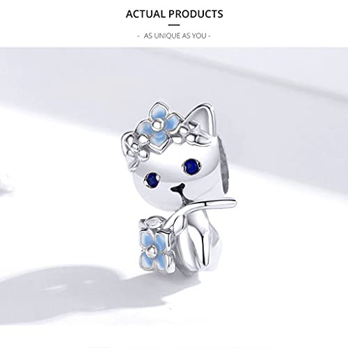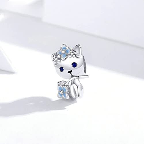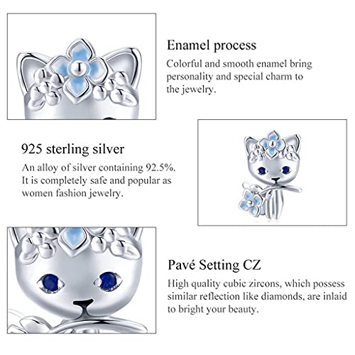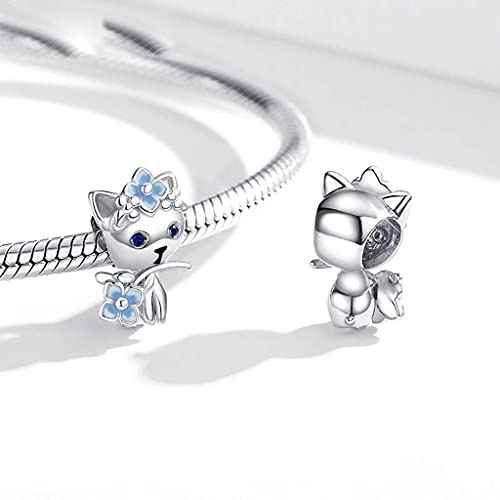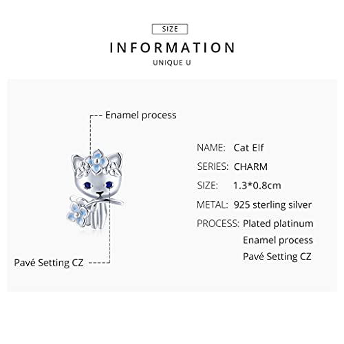 PAHALA 925 Strling Silver Fairy Cute Cat Elf Flower Pendant Charm Bead