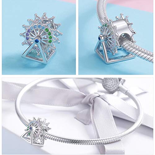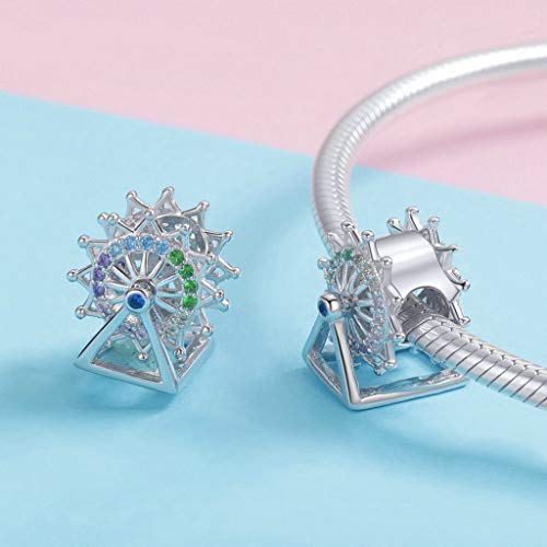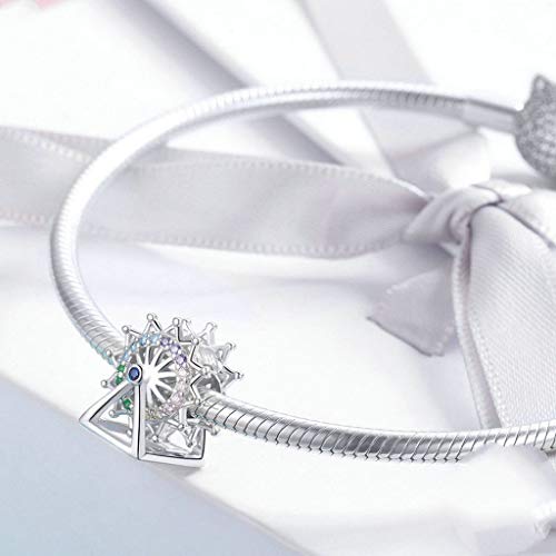 PAHALA 925 Strling Silver Ferris Wheel Amusement Merry Go Round Crystals Charms