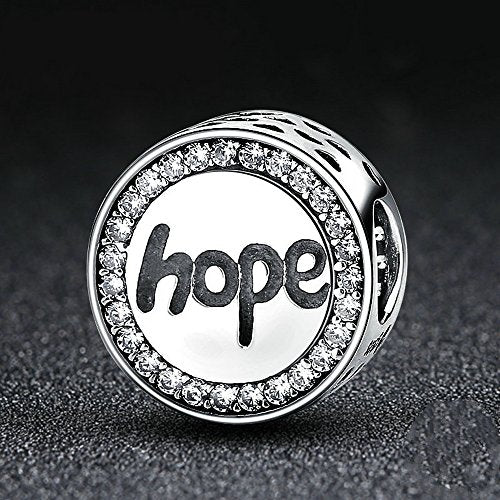 PAHALA 925 Strling Silver Hope with Crystals Charms Pendant Fit Bracelets Necklace