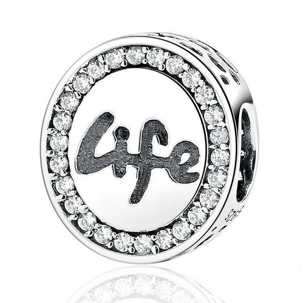 PAHALA 925 Strling Silver Life with Crystals Charms Pendant Fit Bracelets Necklace