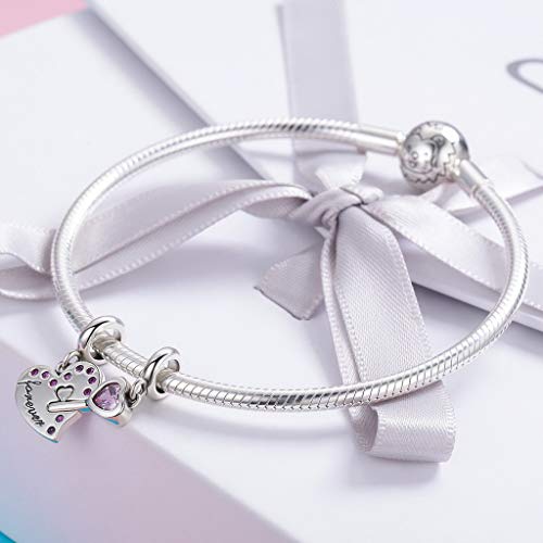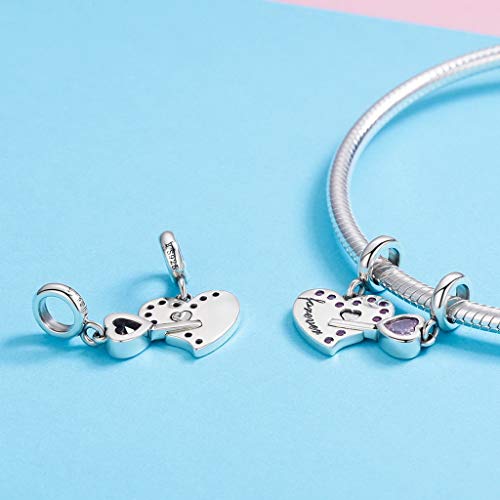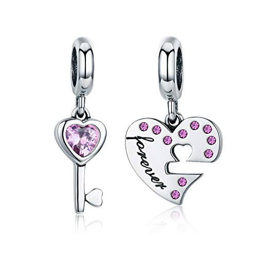 PAHALA 925 Strling Silver Lock Key of Heart Pink Charms