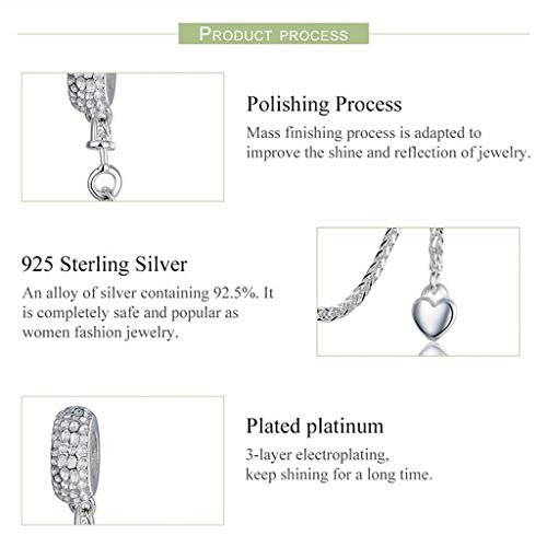 PAHALA 925 Strling Silver Love Heart Safety Chain with Pendant Charms Beads
