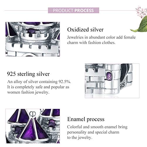 PAHALA 925 Strling Silver Purple Enamel Castle Fairytale Charm Bead