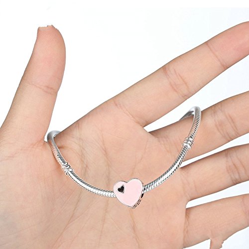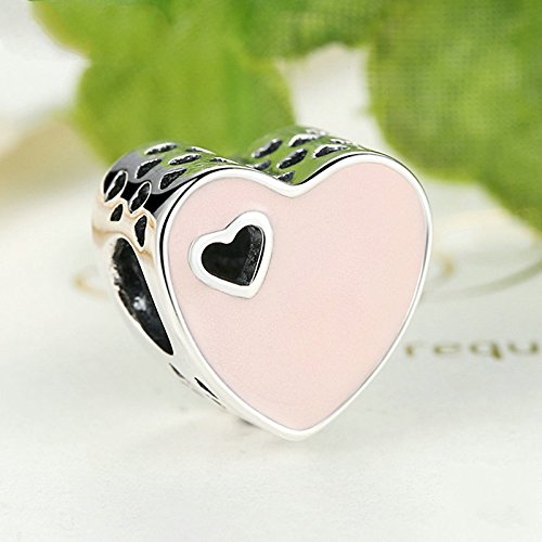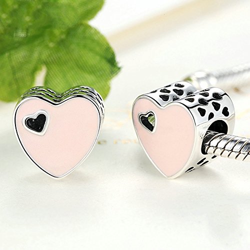 PAHALA 925 Strling Silver Romantic Heart with Pink Enamel Charms Fit Bracelets Necklace
