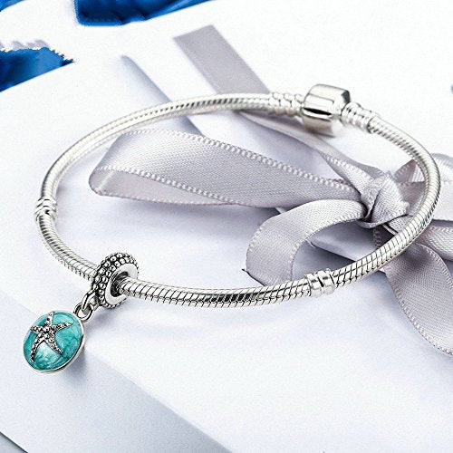 PAHALA 925 Strling Silver Starfish See with Green Blue Enamel Charms Fit Bracelets Necklace