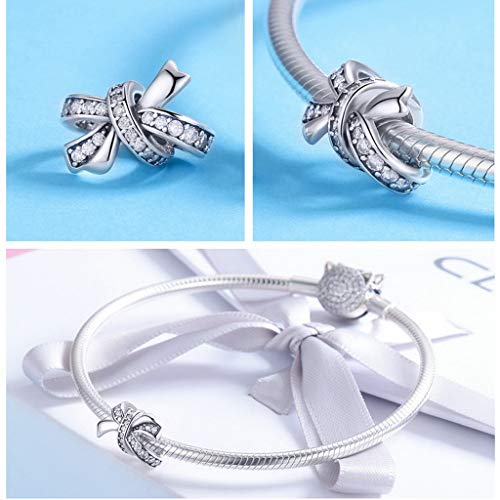 PAHALA 925 Strling Silver Sweet Bowknot Dazzling Crystals Charms